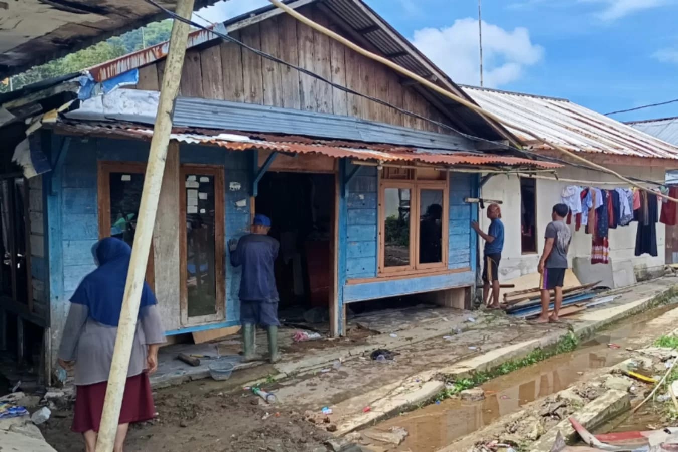 Namun, di balik kondisi itu, semangat gotong royong justru semakin terasa. Kaum laki-laki memperkuat tiang dan pagar rumah seadanya, sementara para perempuan mengangkut tanah dengan digendong untuk menimbun lantai yang pecah agar air tidak masuk saat hujan turun.