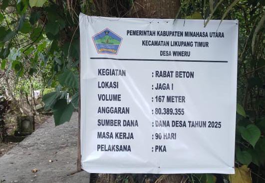Wineru, (MINUT )Lintaslestari.news – Pembangunan infrastruktur jalan berupa rabat beton yang dilaksanakan di Desa Wineru, Kecamatan Likupang Timur, Kabupaten Minahasa Utara, menjadi perhatian sebagian masyarakat setempat. Proyek tersebut dinilai cukup baik dari sisi kualitas fisik, namun dipertanyakan dari aspek skala prioritas karena lokasinya berada di kawasan pekuburan desa.