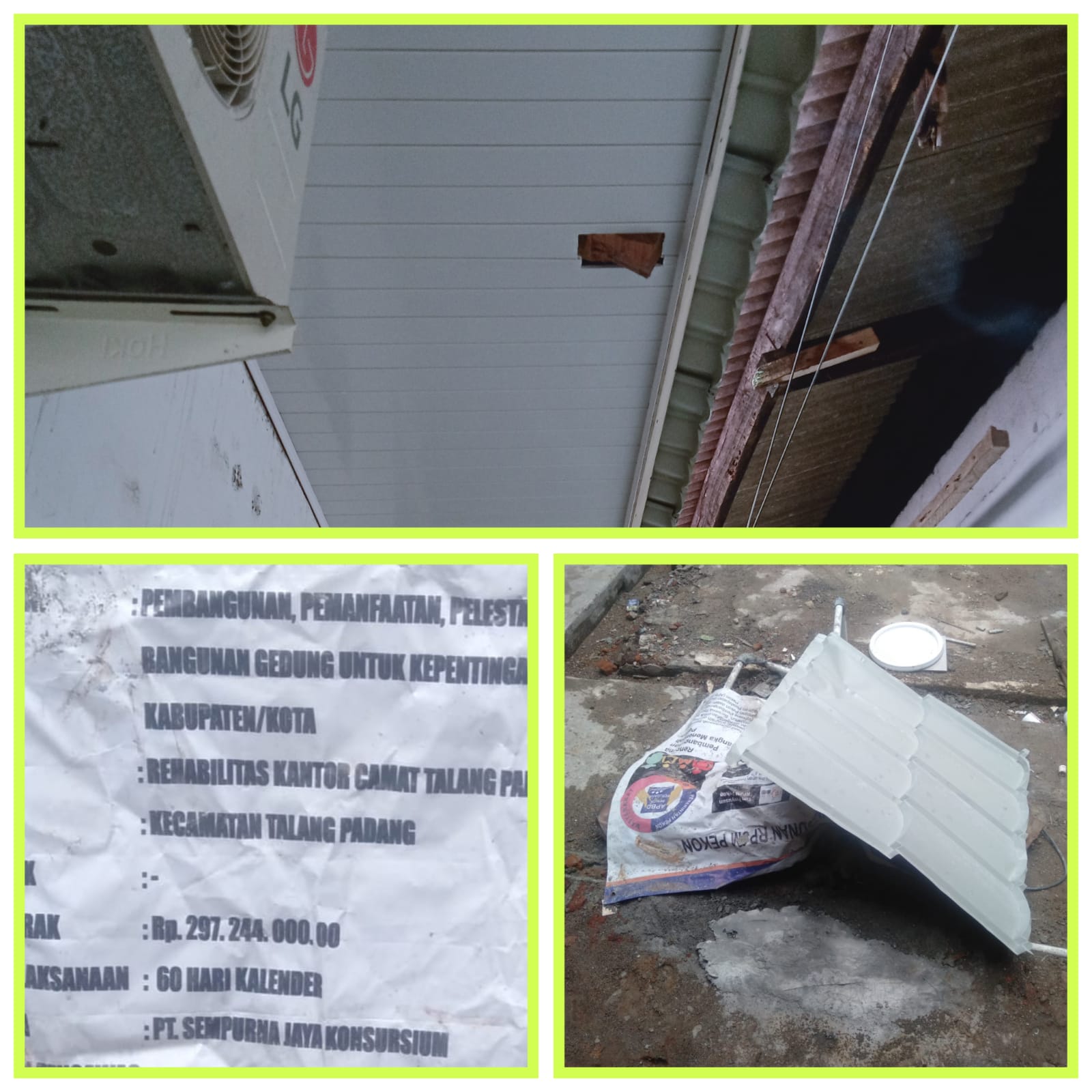 Dalam hal ini sudah jelas kalau pembangunan rehabilitas kantor camat talang Padang, disinyalir ada indikasi penyelagunaan anggaran demi meraup mencari keuntungan begitu besar dan mengurangi kualitas.
