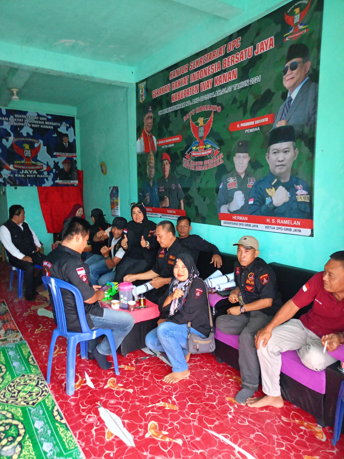 Aksi sosial ini dipimpin langsung oleh Ketua DPC GRIB JAYA Way Kanan, Idrus SR, didampingi oleh Wakil Ketua Jon Piter, serta turut hadir Penasehat GRIB JAYA Way Kanan, Hepi Haryanto, SE. Kehadiran para pengurus inti ini menjadi penyemangat bagi seluruh anggota yang terlibat di lapangan.