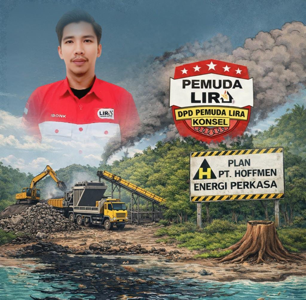 Konawe Selatan, Lintaslestari.news – Dewan Pimpinan Daerah Pemuda Lumbung Informasi Rakyat (DPD Pemuda LIRA) Kabupaten Konawe Selatan mengecam keras aktivitas penambangan batu (crusher) yang diduga dilakukan oleh PT. Hoffman Energi Perkasa di Pulau Senja, Konawe Selatan.