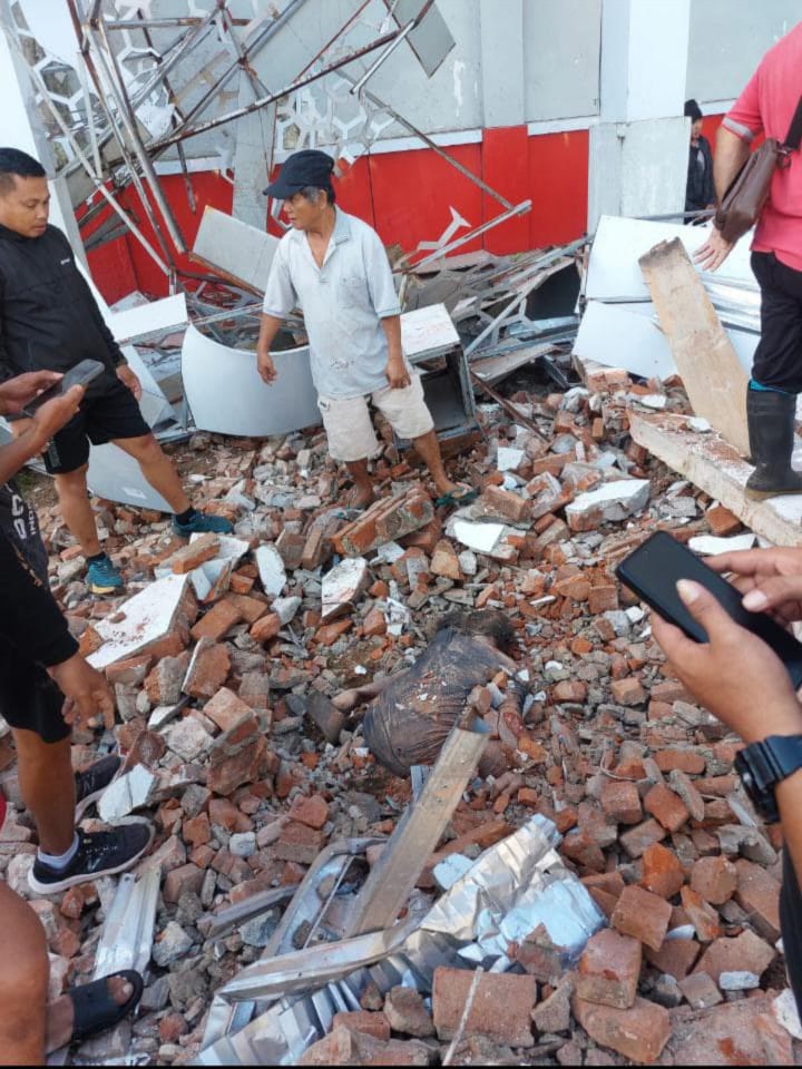 Laporan awal menyebutkan satu orang meninggal dunia setelah tertimpa reruntuhan di Gedung KONI Manado.