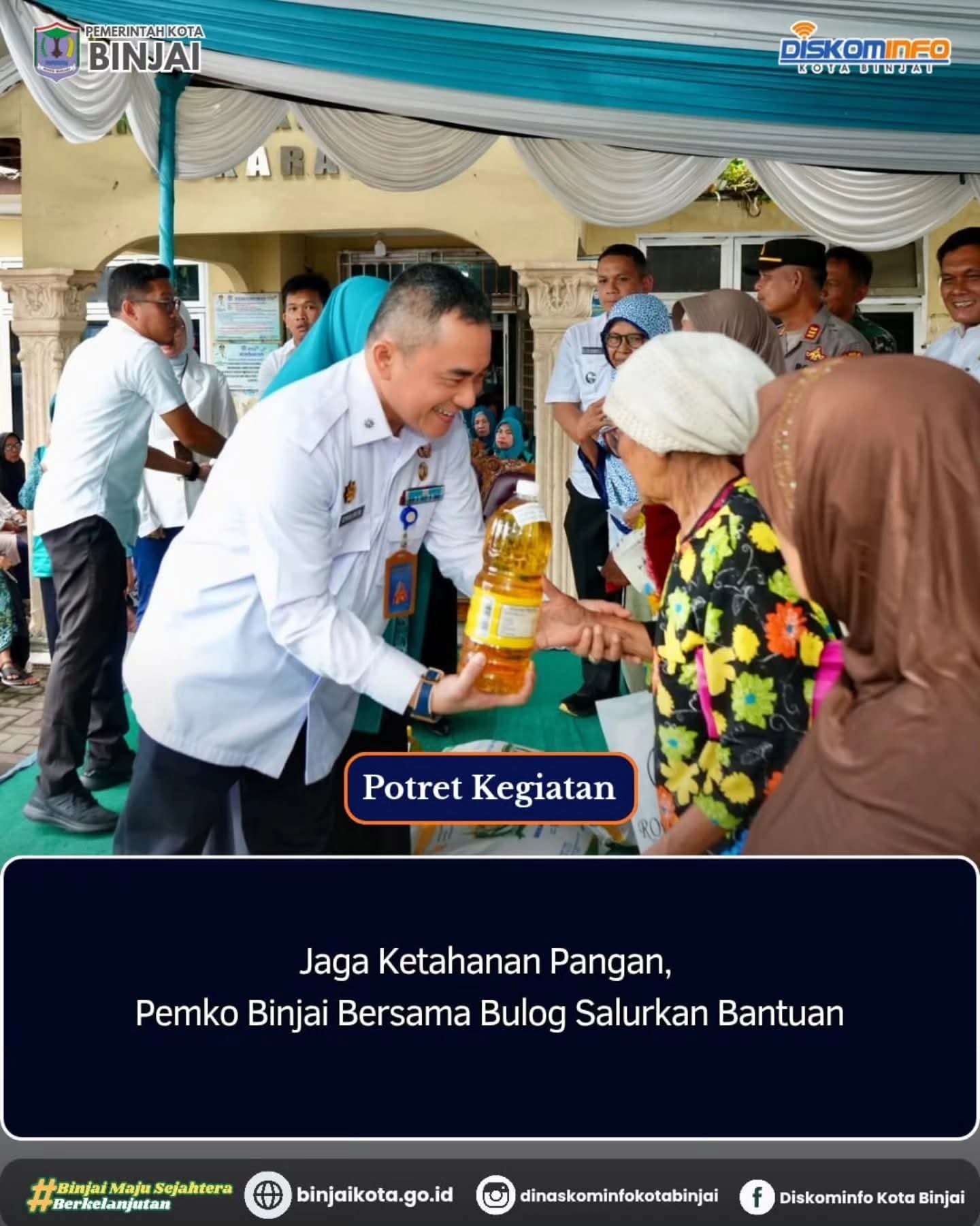 Dalam sambutannya, Sekda Kota Binjai menyampaikan apresiasi dan terima kasih kepada Bulog, khususnya Wakil Pimpinan Cabang Binjai Hana Yulia, atas dukungan dalam penyaluran bantuan pangan kepada masyarakat. Ia menjelaskan bahwa bantuan tersebut akan disalurkan ke lima kecamatan di Kota Binjai.