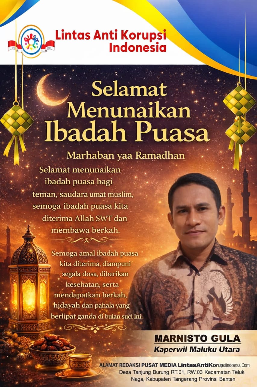 MALUKU UTARA , Lintaslestari.news — Menyambut datangnya bulan suci Ramadan, Kapewil Maluku Utara dari Lintas Anti Korupsi Indonesia, Marnisto Gula, menyampaikan ucapan selamat menunaikan ibadah puasa kepada seluruh umat Muslim, khususnya masyarakat Maluku Utara.Kamis 19/02/2026