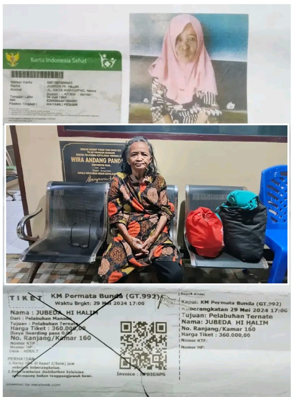 Kepolisian mengimbau kepada masyarakat, khususnya warga Maluku Utara atau siapa pun yang mengenal Jubeda Hi. Halim, agar dapat segera menghubungi Polsek Manganitu untuk memberikan informasi tambahan terkait keluarga atau alamat tempat tinggal yang bersangkutan.
