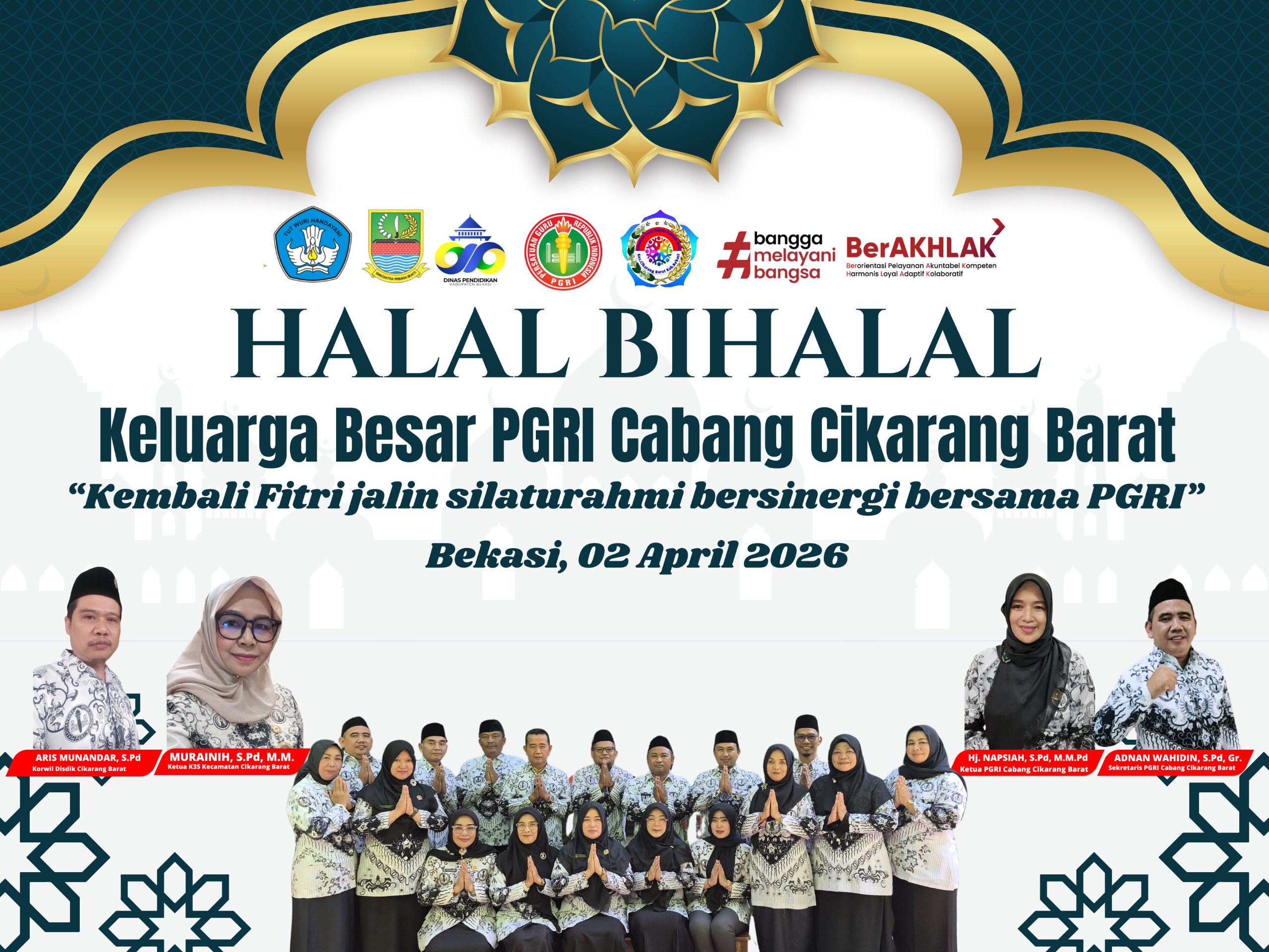 Cikarang Barat, (JAWA BARAT) Lintaslestari.news- Kamis (02 April 2026) – Persatuan Guru Republik Indonesia (PGRI) Cabang Cikarang Barat menggelar kegiatan Halal Bihalal dengan mengusung tema “Kembali Fitri Jalin Silaturahmi Bersinergi Bersama PGRI”. Acara berlangsung khidmat di Gedung PKG PGRI Cikarang Barat dan dihadiri oleh berbagai unsur pendidikan serta tokoh masyarakat.