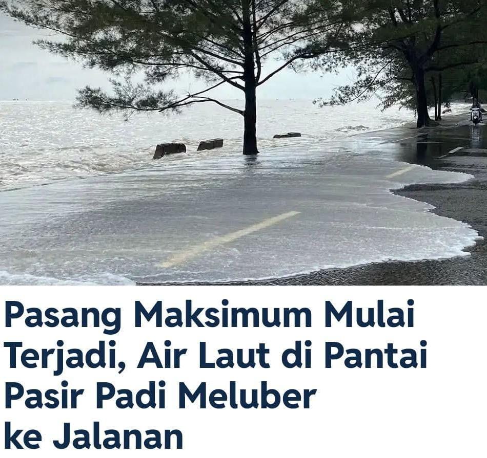 Puncak pasang maksimum air laut terjadi di kawasan Pantai Pasir Padi, Pangkalpinang.
