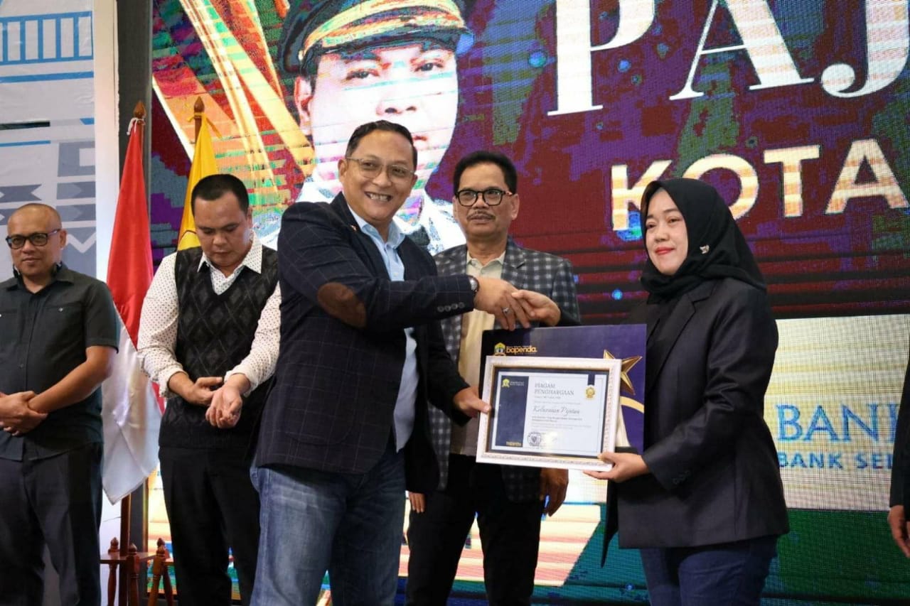 Serang, Lintaslestari.news Kepala Bapenda Kota Serang, W. Hari Pamungkas menyerahkan piagam kepada salah satu wajib pajak pada Anugerah Pajak Daerah, sebagai apresiasi atas kontribusi penerimaan pajak Kota Serang tahun. Penerimaan pajak daerah Kota Serang hingga penghujung November 2025, mendekati target tahunan. Dari target Rp341 miliar, pendapatan pajak telah mencapai 86,87 persen atau sekitar Rp295 miliar.
