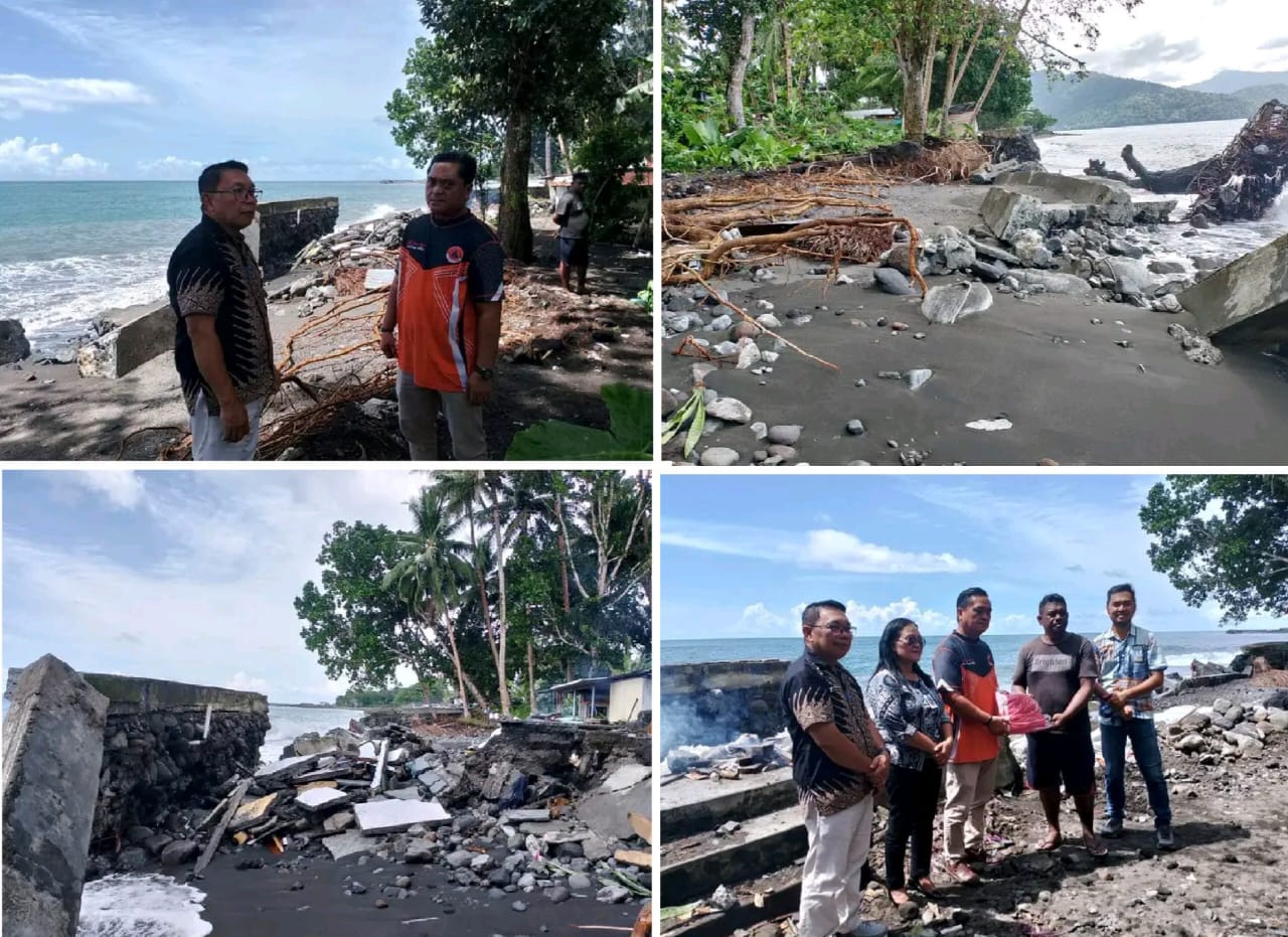 Sangihe, Lintaslestari.news: Menanggapi fenomena alam gelombang pasang yang melanda pesisir Kabupaten Kepulauan Sangihe, Pemerintah Kabupaten (Pemkab) Sangihe bergerak cepat melakukan penanganan darurat. Kolaborasi lintas sektor yang melibatkan Dinas Sosial (Dinsos), Badan Penanggulangan Bencana Daerah (BPBD), dan Pemerintah Kecamatan Tahuna dilaksanakan hari ini untuk meninjau langsung kondisi warga terdampak di Kelurahan Santiago Akembuala.