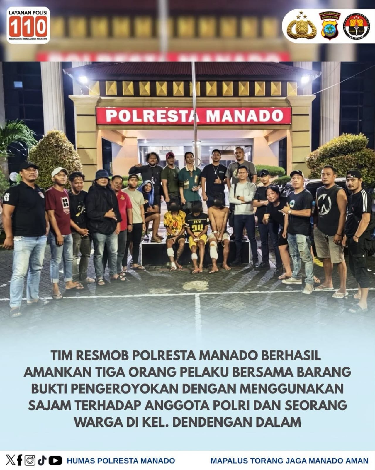 Manado, LintasLestari.News — Tim Resmob Satuan Reserse Kriminal (Satreskrim) Polresta Manado mengamankan tiga orang terduga pelaku provokasi yang diduga hendak memicu keributan di Kelurahan Dendengan Dalam, Kota Manado.